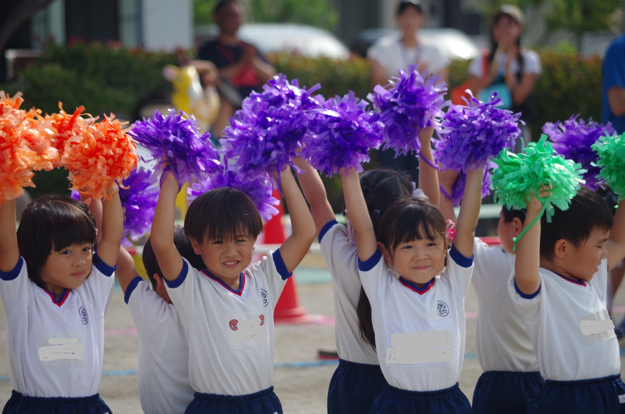 ポンポンを持って踊るのは年中さん。腕が伸びていてさすがですね。