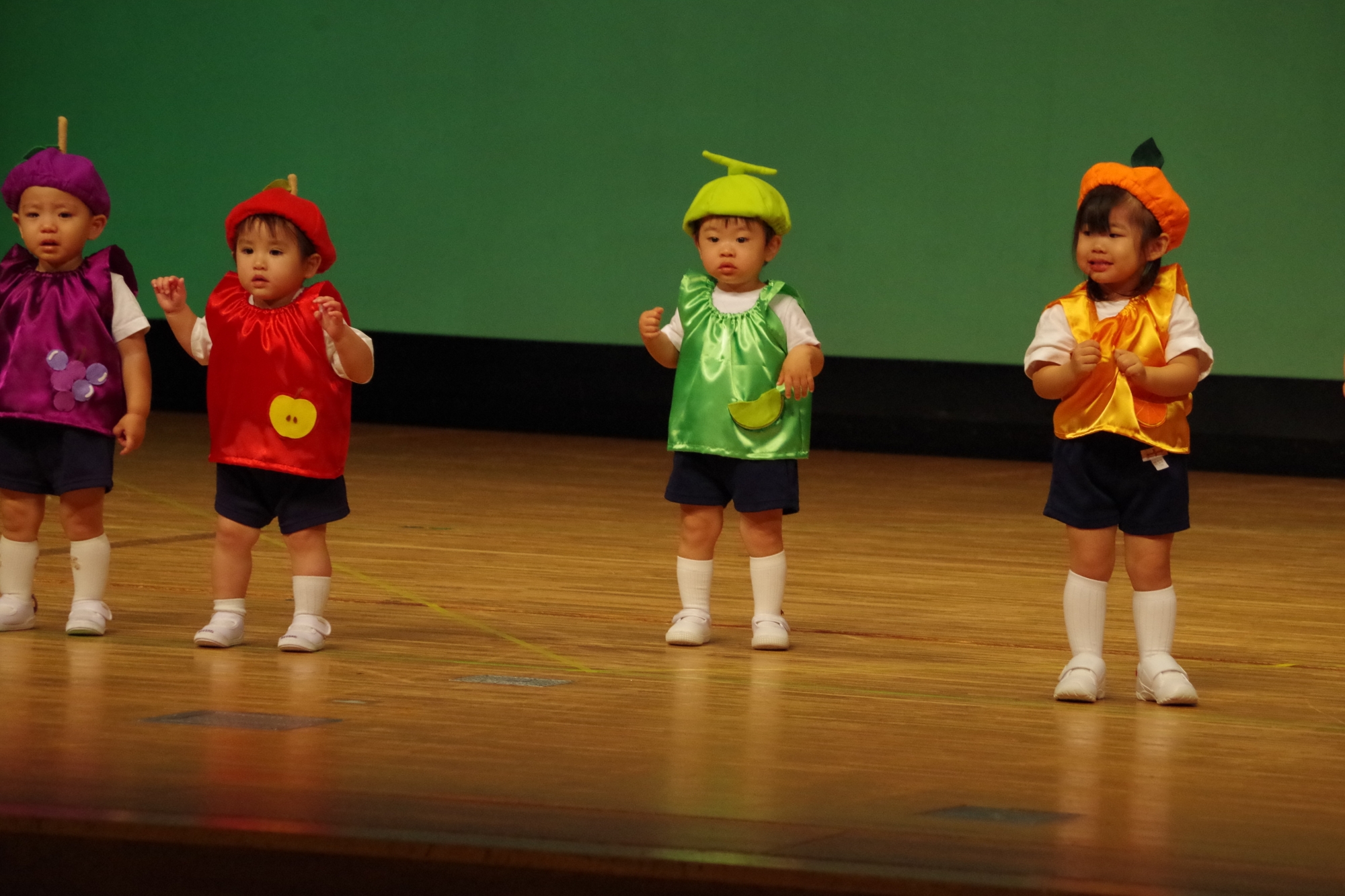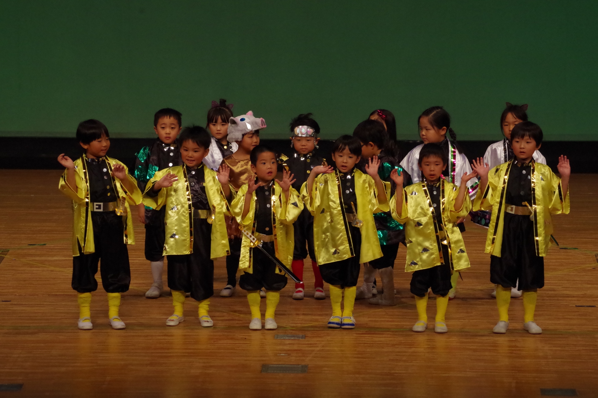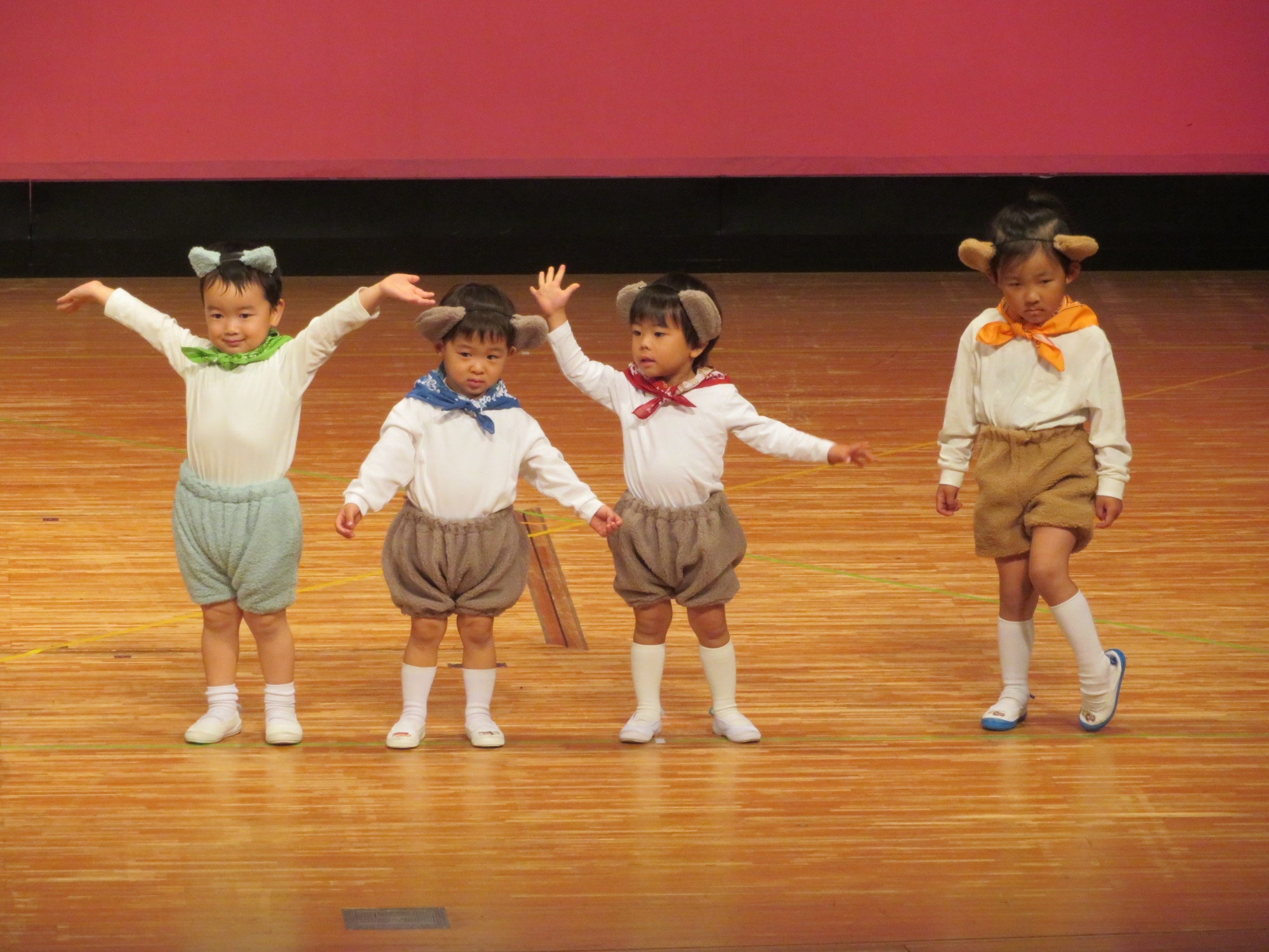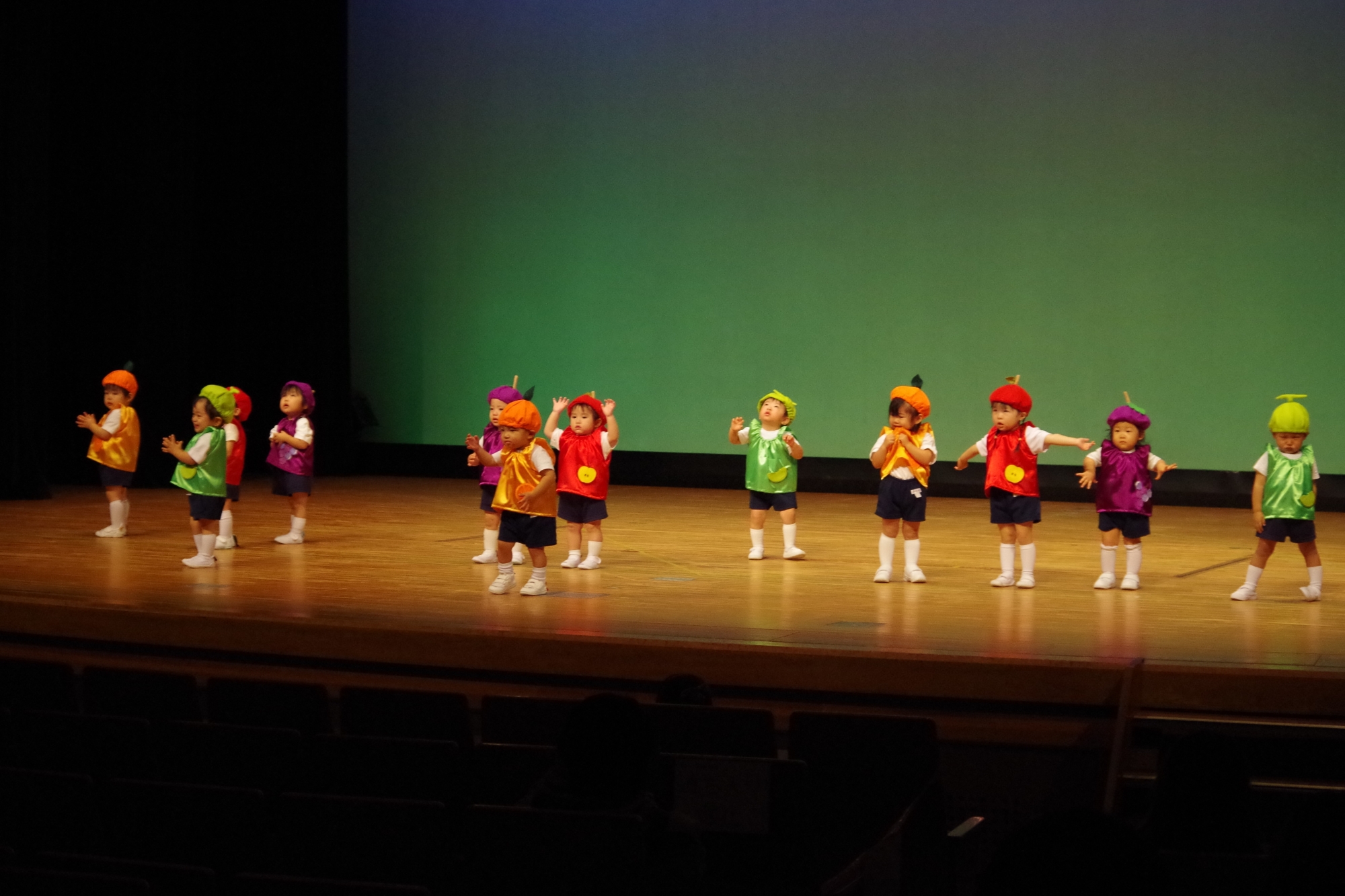 大きなステージでの発表が初めてのお友だち、2回目のお友だち、最後のお友だちなどいたと思いますが、堂々と楽しそうに元気に踊ることができていました(^^)