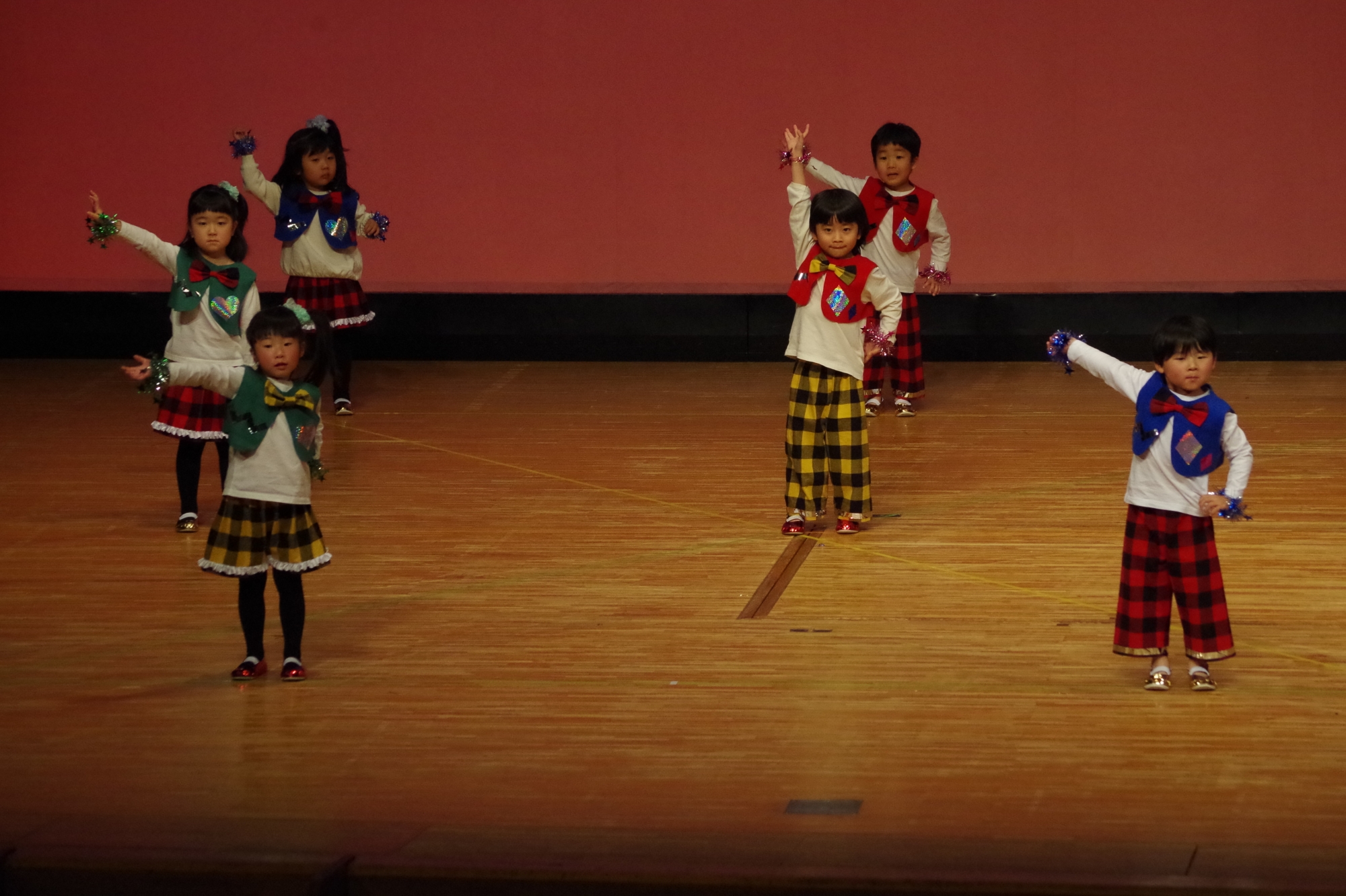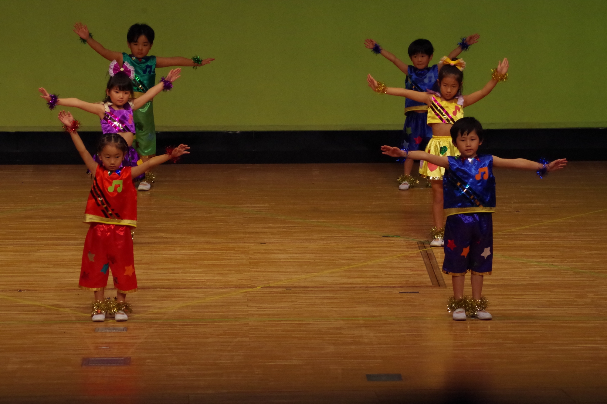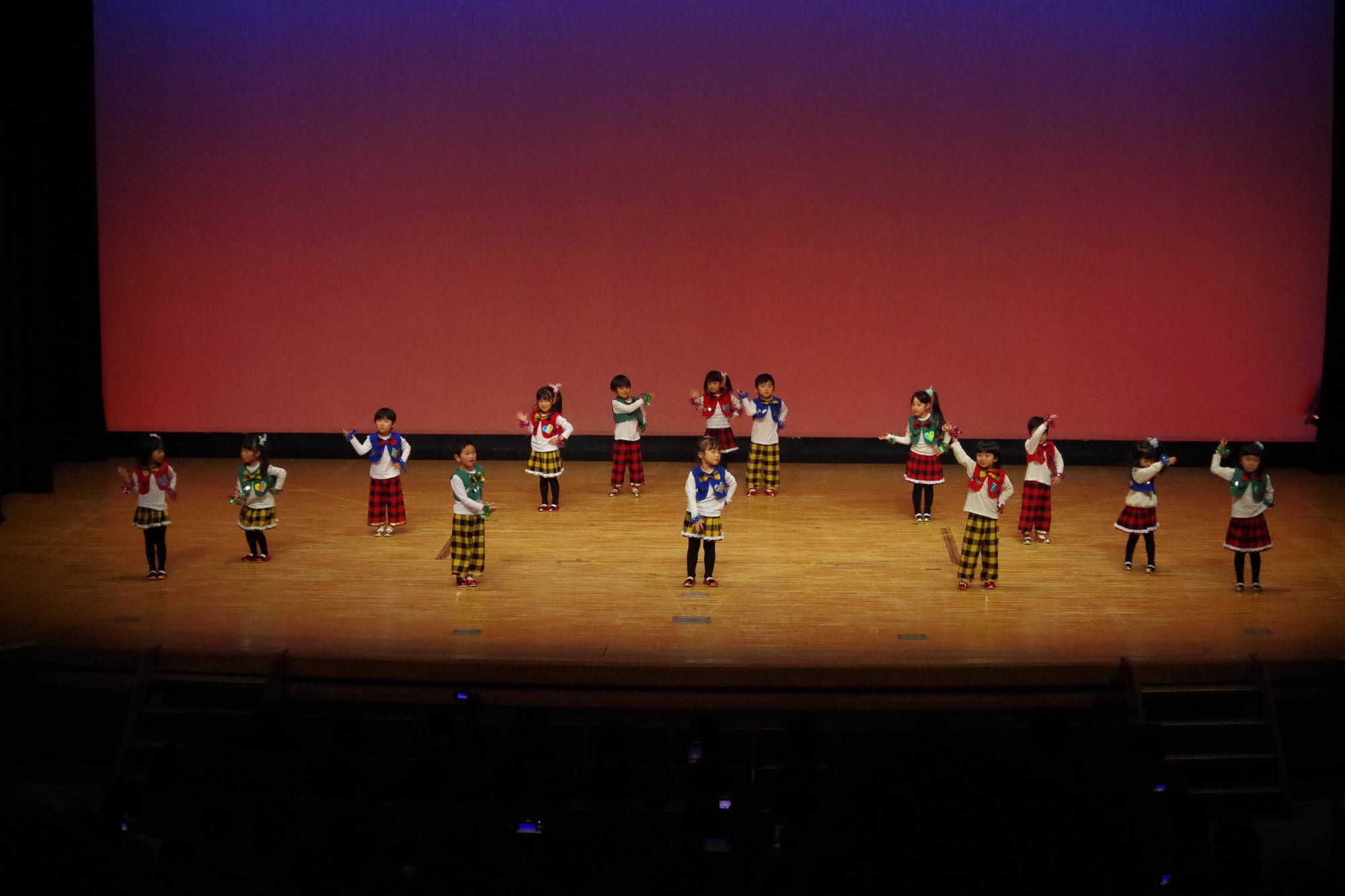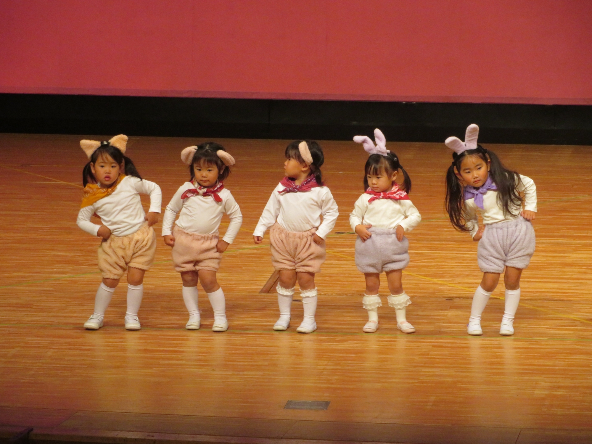 大きなステージでの発表が初めてのお友だち、2回目のお友だち、最後のお友だちなどいたと思いますが、堂々と楽しそうに元気に踊ることができていました(^^)
