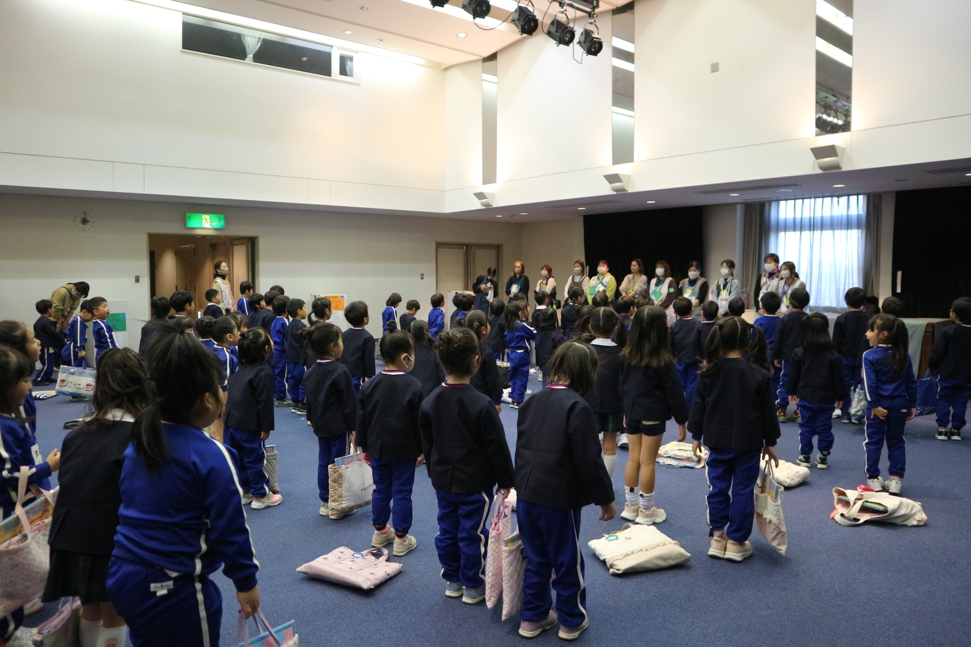 いつもと違う場所で少し緊張した様子だったにじ組、そら組のお友だちですが、先生たちの姿を見つけるとニコッと笑顔に(*^^*)