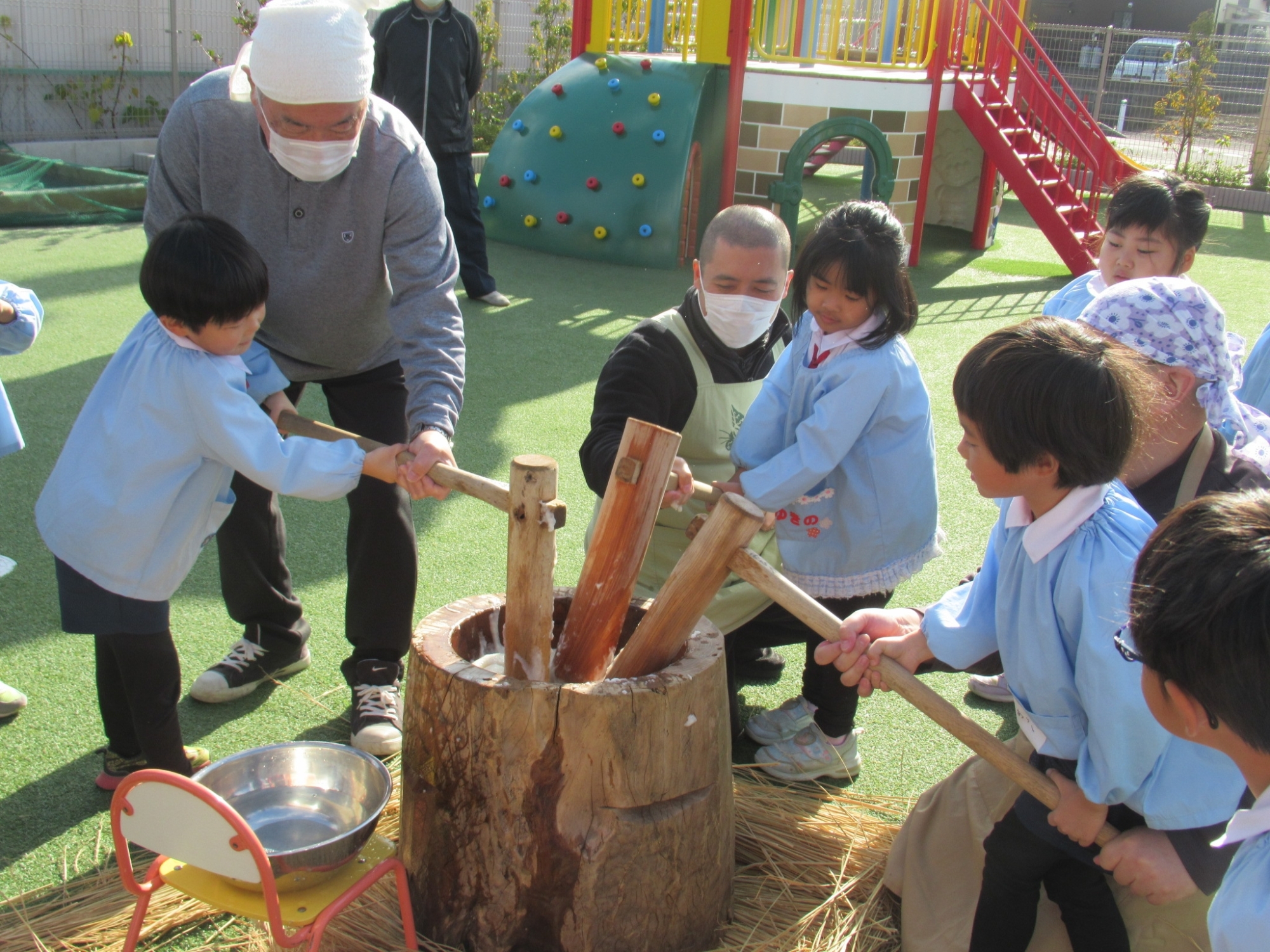 子どもたちはおもちになる様子を見て「すごい!」と言っていました!