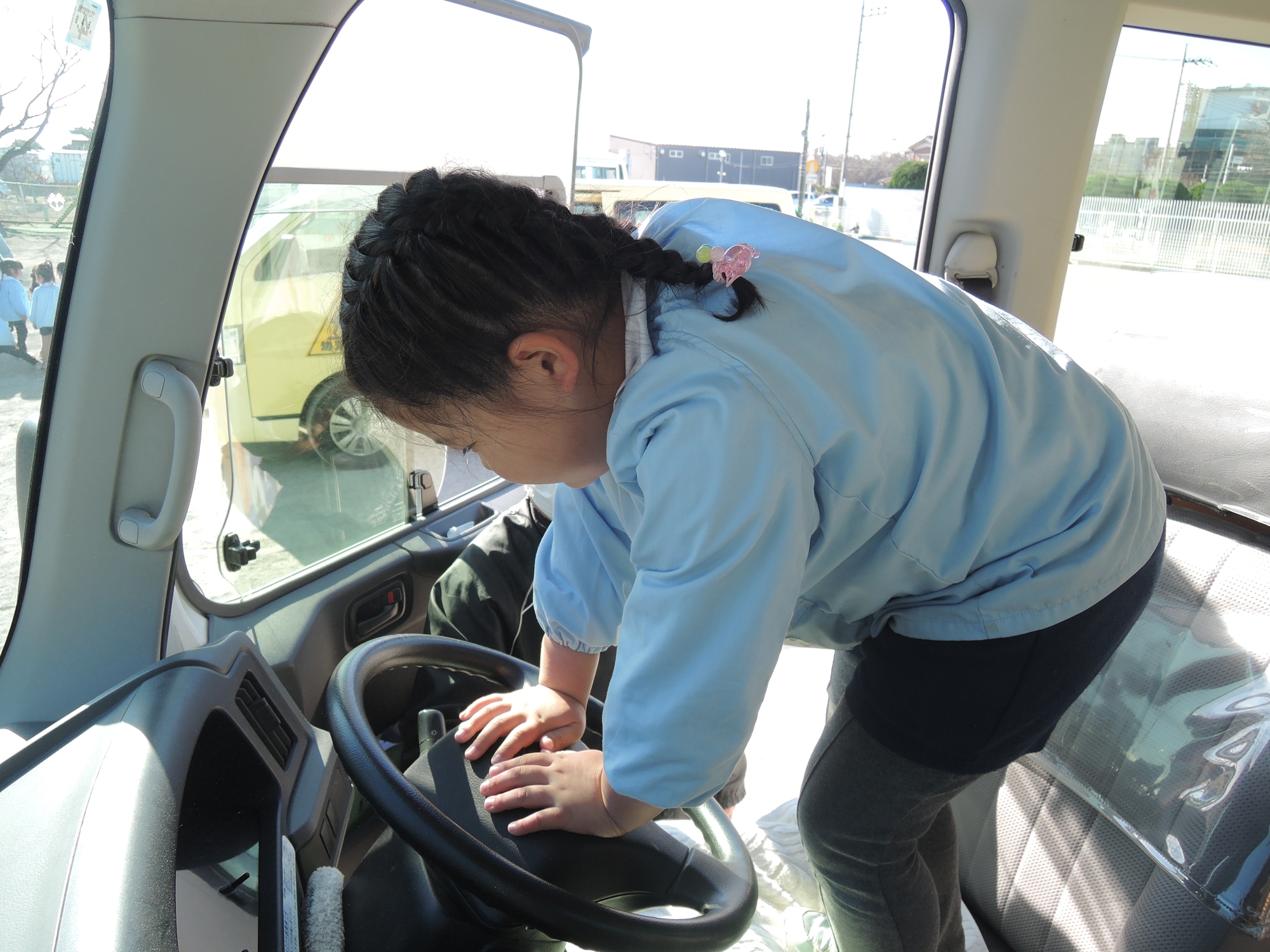 はじめは大きな音で驚く子がいたり、座席に立つことへの戸惑いがありましたが、運転手さんのや先生たちの話をしっかりと聞き行うことができました!