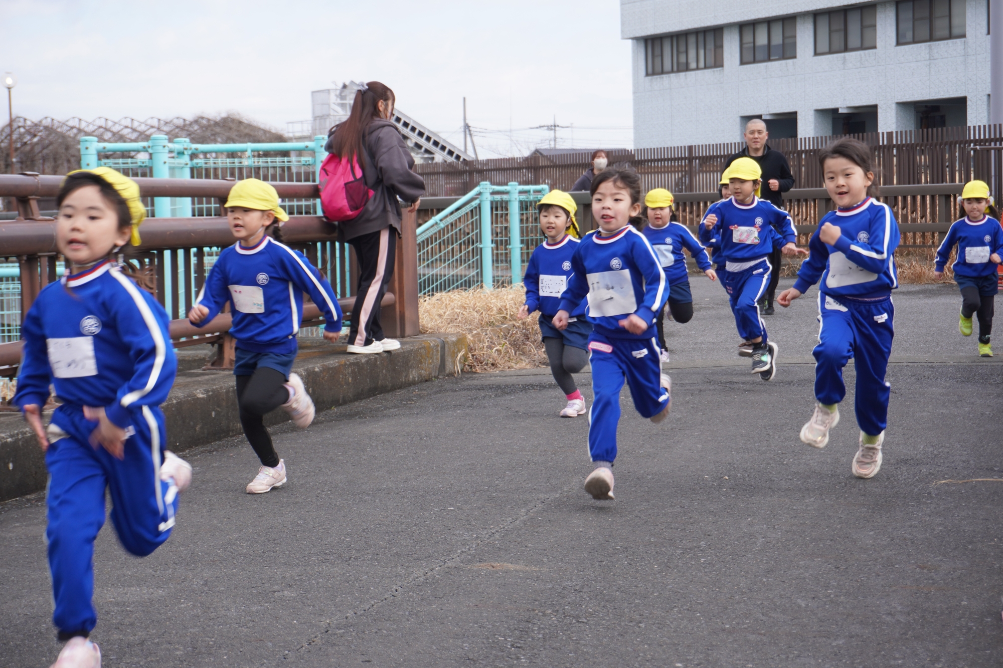 普段は園庭で練習を行っていますが、今日は本番と同じコースを走り、普段との違いで戸惑いを感じながらも子ども達は気合が入っていました(*^-^*)