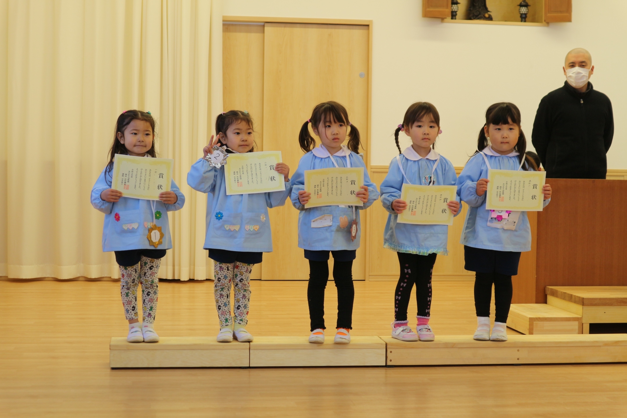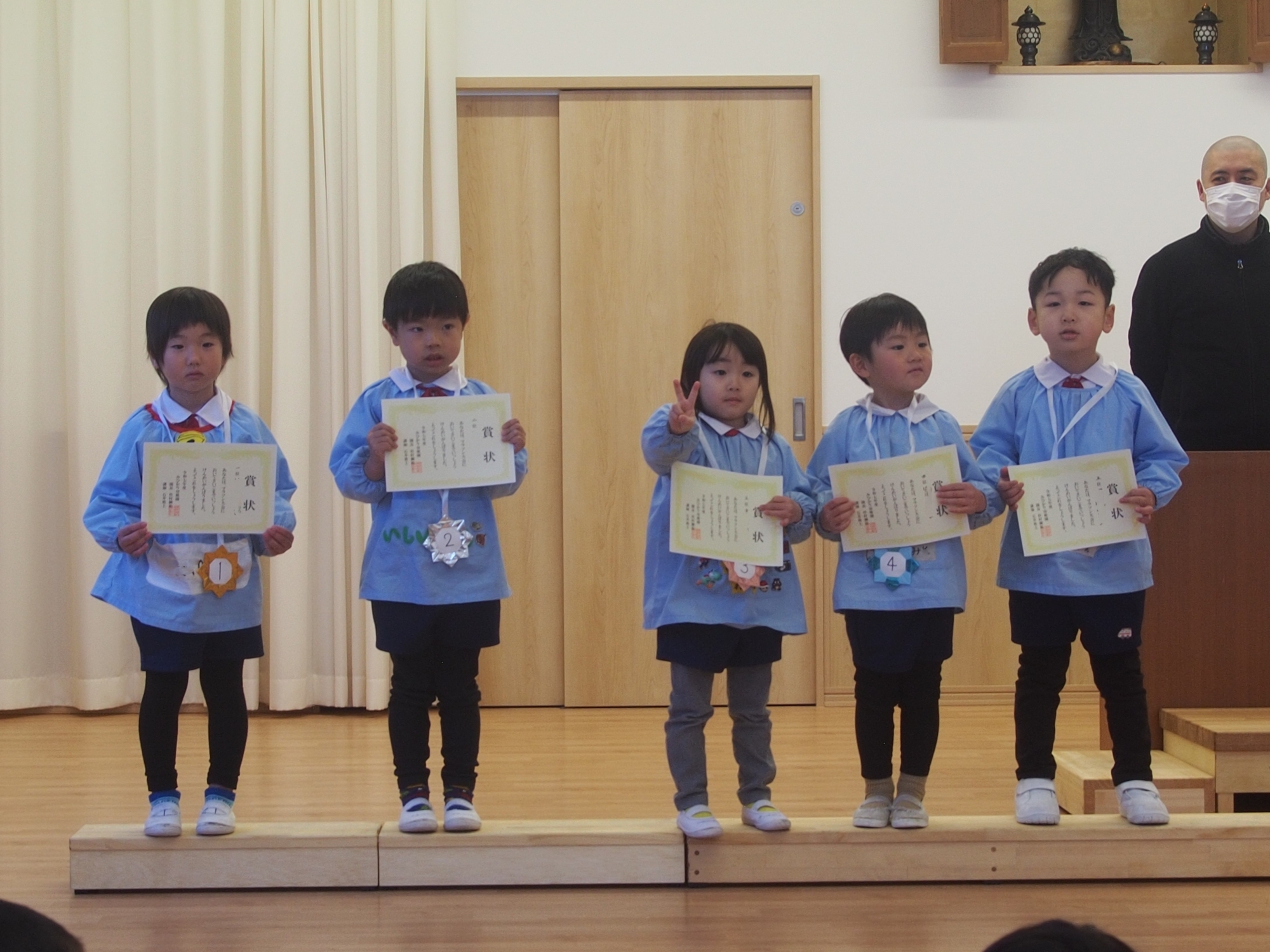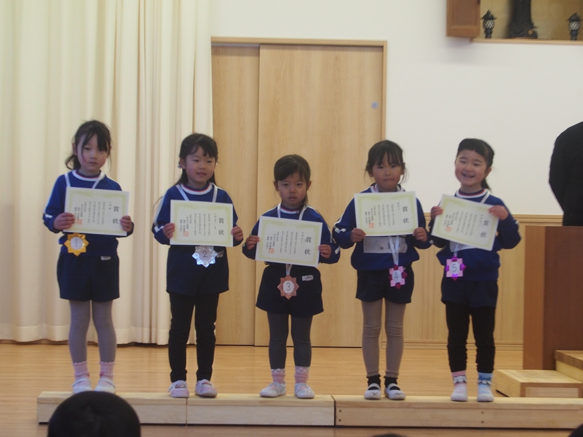 マラソン大会後に1~5位の子の表彰を行った後は、各部屋でも頑張った子どもたちにメダルと賞状が渡されました!メダルや賞状をもらった子ども達はとても嬉しそうでした(*^-^*)
